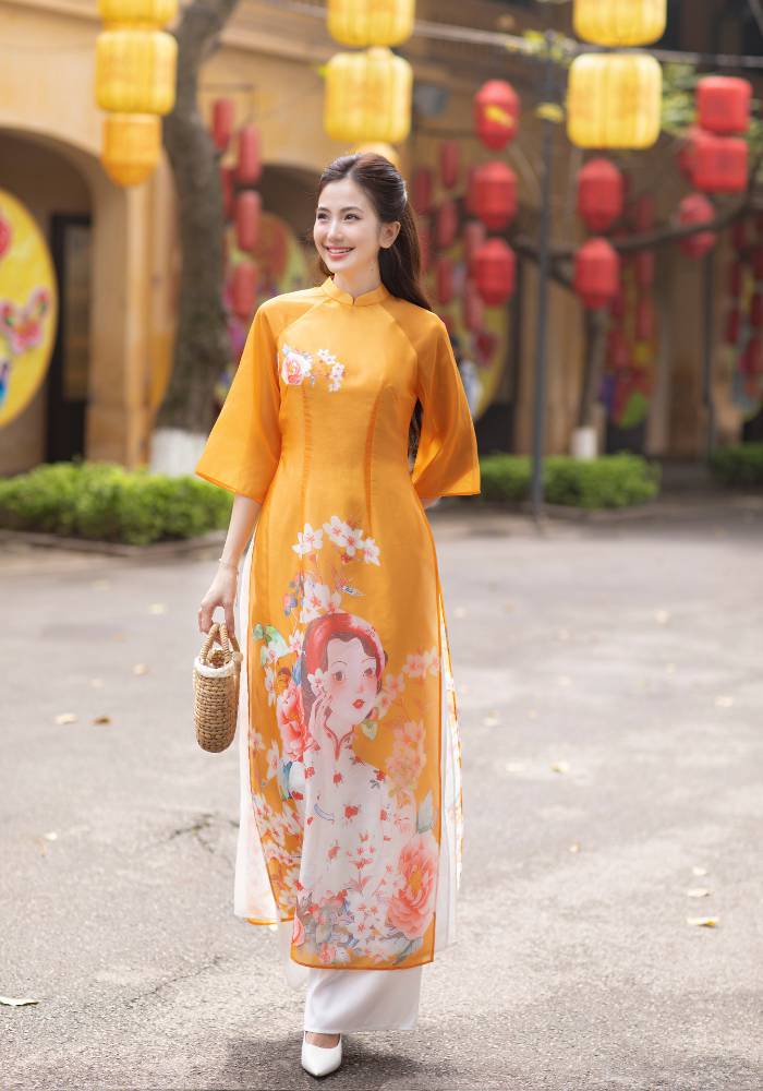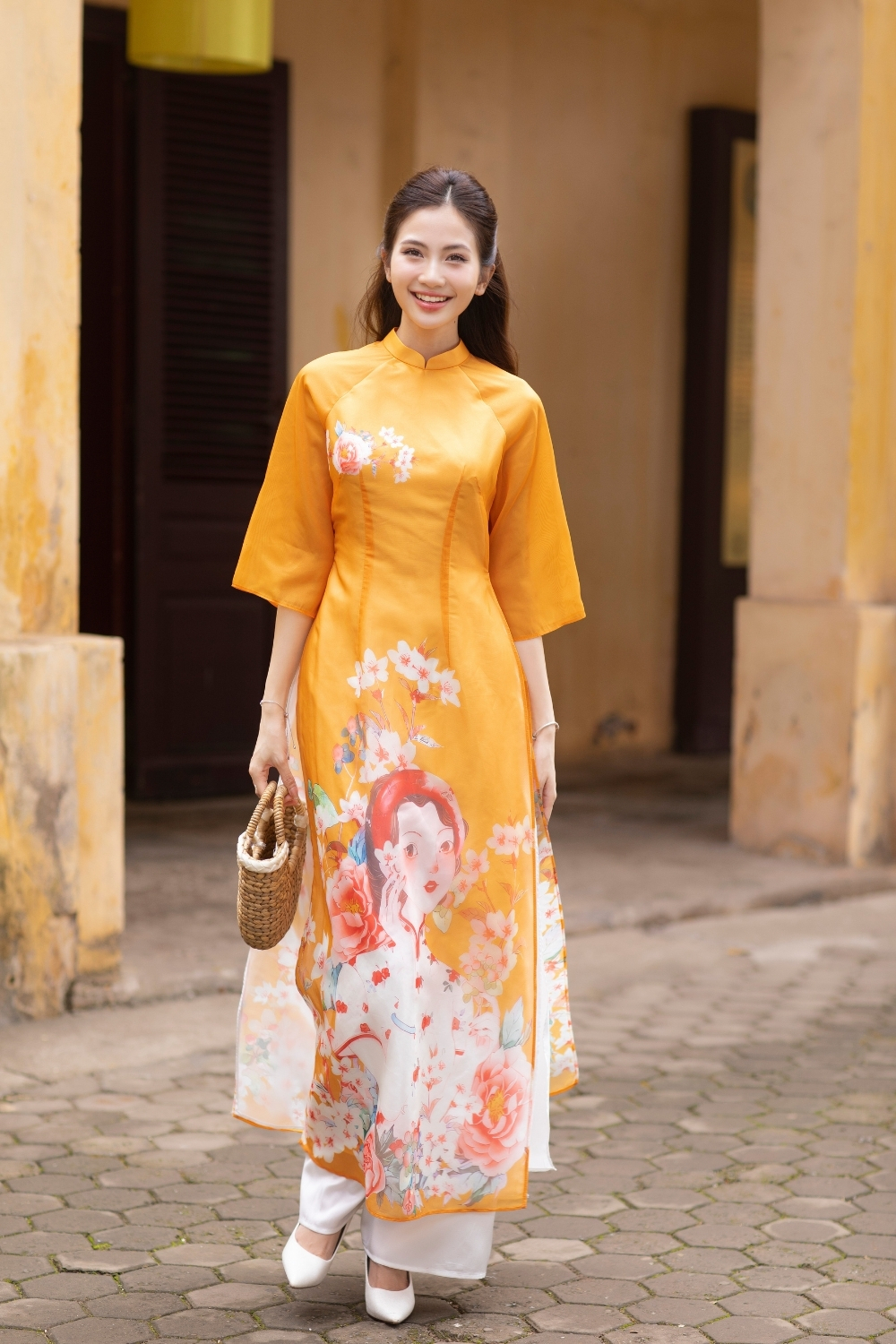 - Tên sản phẩm: Áo dài Hi Văn cam