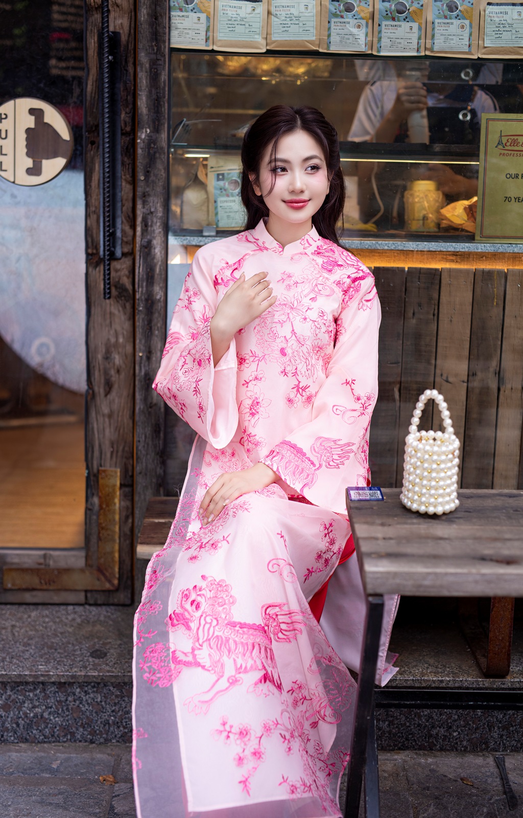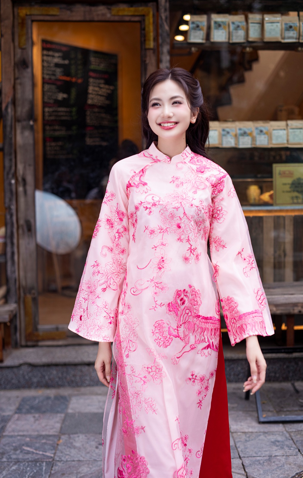 Áo dài Lân Sư hồng phấn