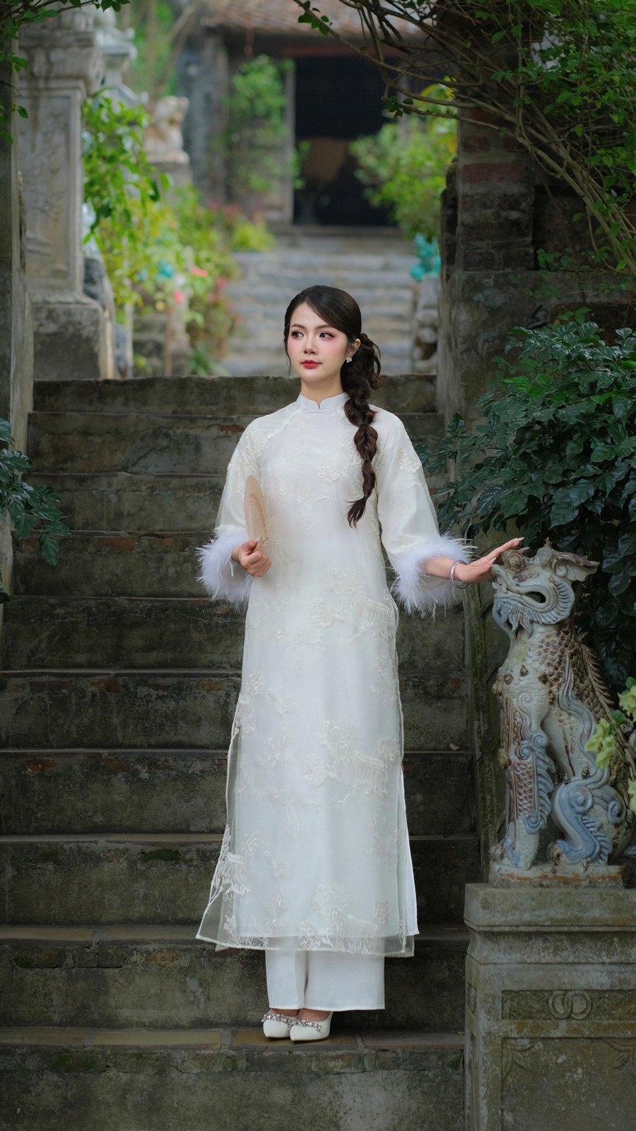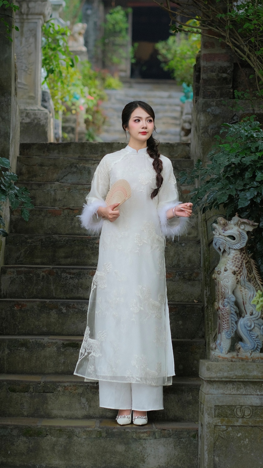 Áo dài Lân Sư trắng  Áo dài Lân Sư trắng