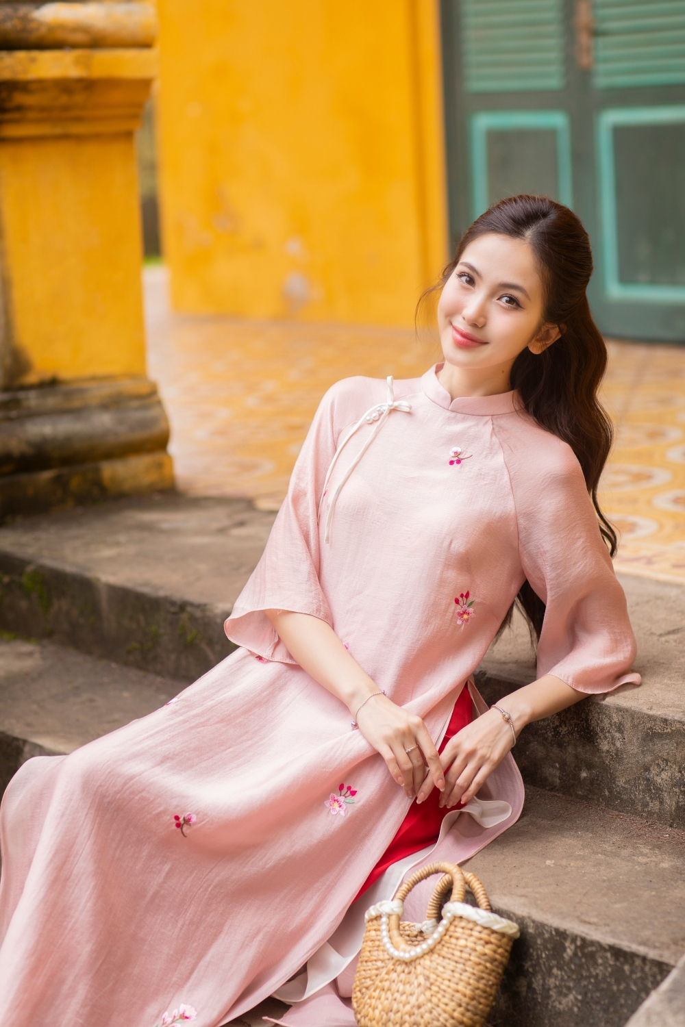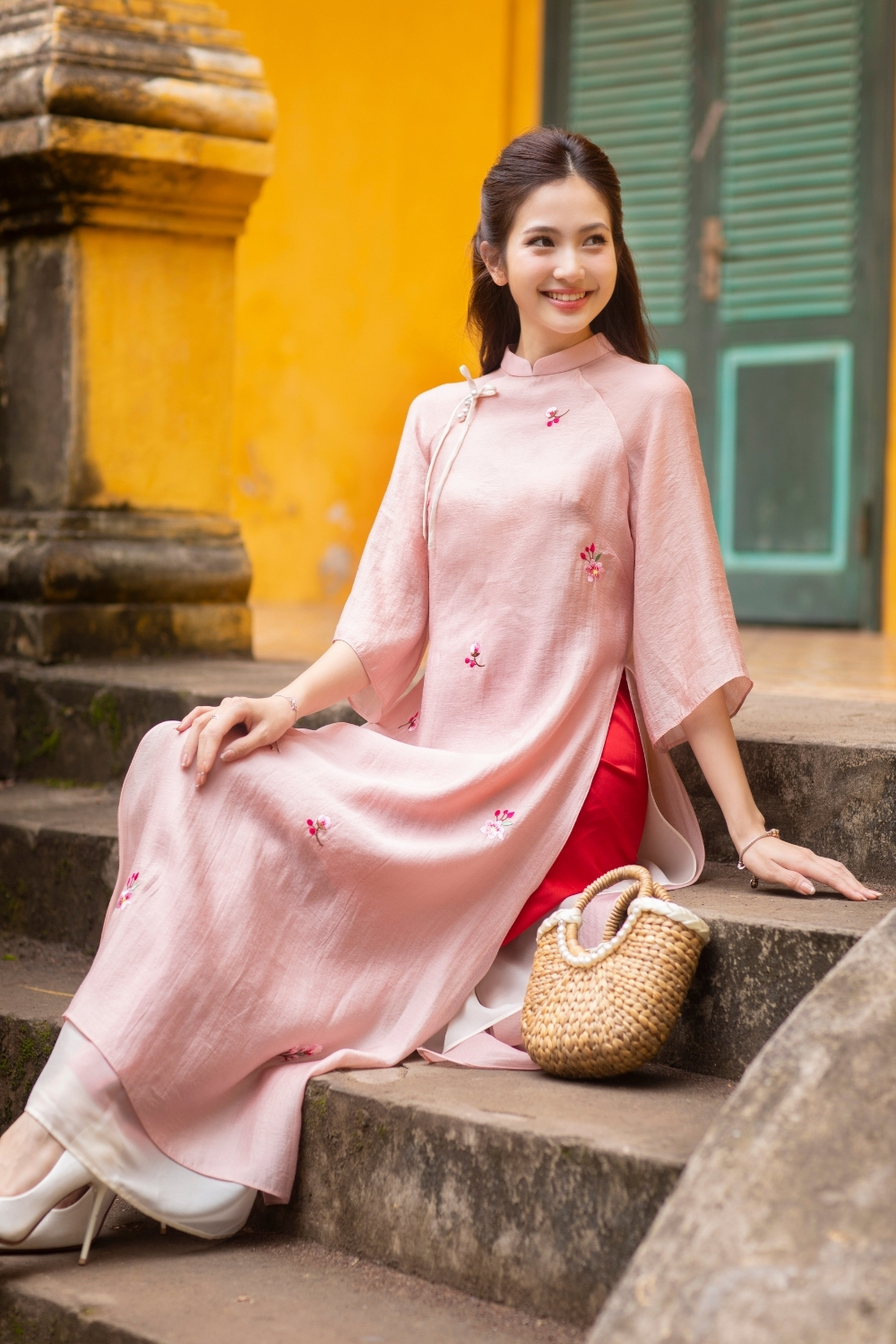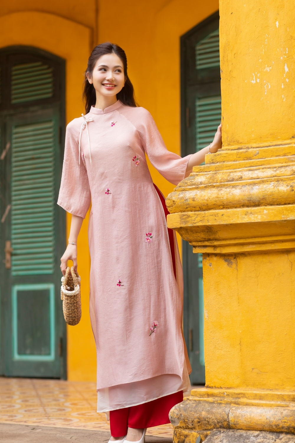Áo dài Nhã Vân hồng